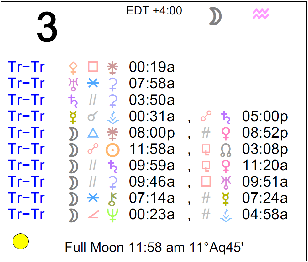 - The Full Moon occurs today in the sign of Aquarius.