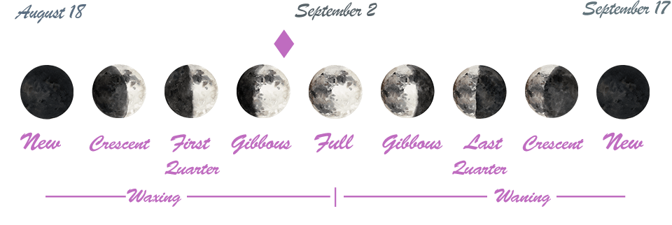 - The First Quarter Moon occurred on the 25th, and the Full Moon will occur on September 2nd.
