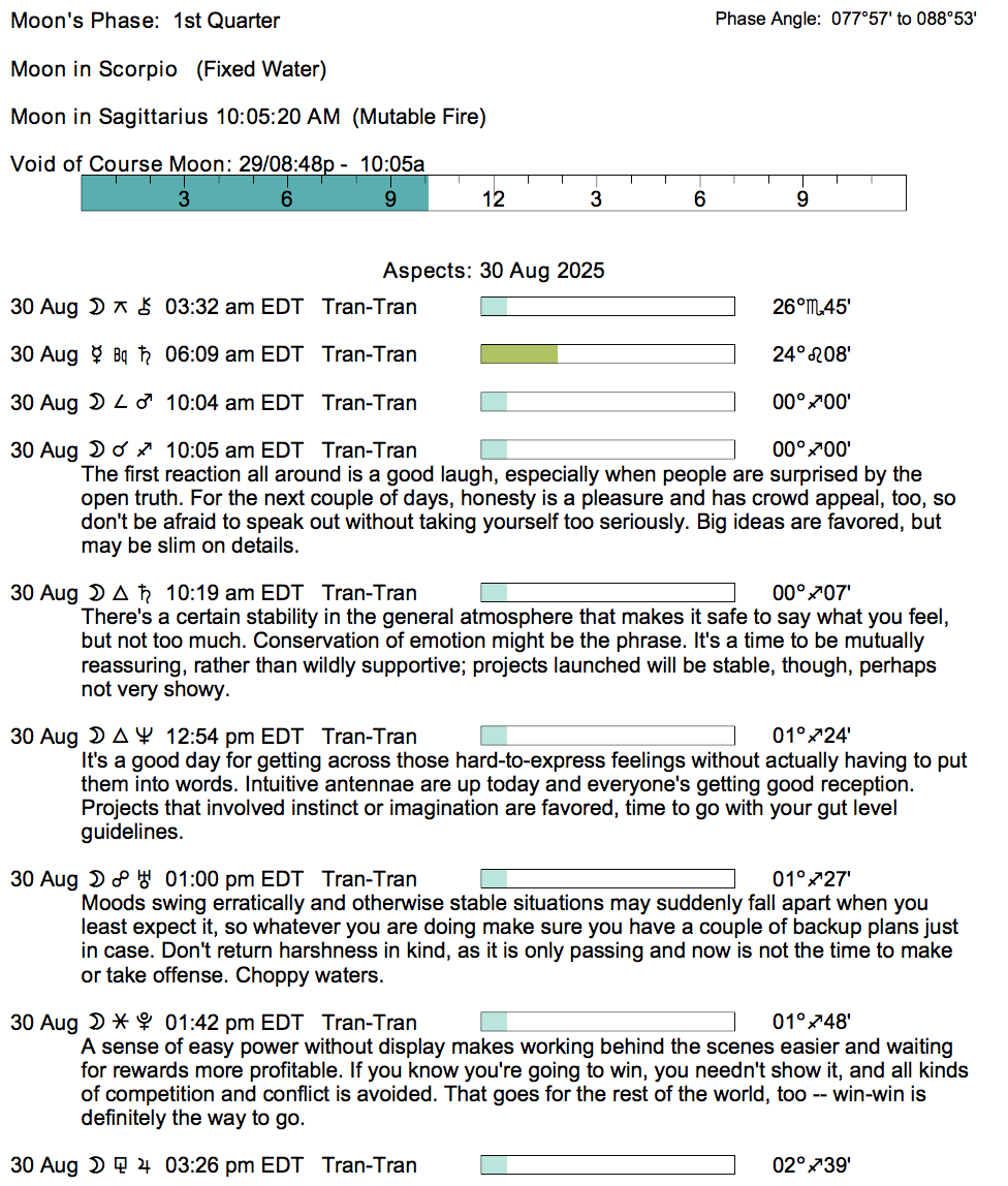 If you’re astrologically inclined and interested in the details of the Astrology of today, here are some of the factors considered in the forecasts: