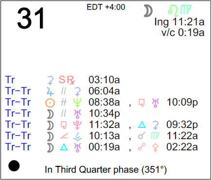 - The Moon is void from 12:19 AM to 11:21 AM.
