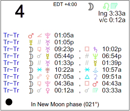- The Moon is void from 12:12 AM to 3:33 AM.