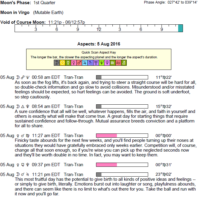 - The Moon is in Virgo all day (until Saturday, August 6th, at 12:56 PM).