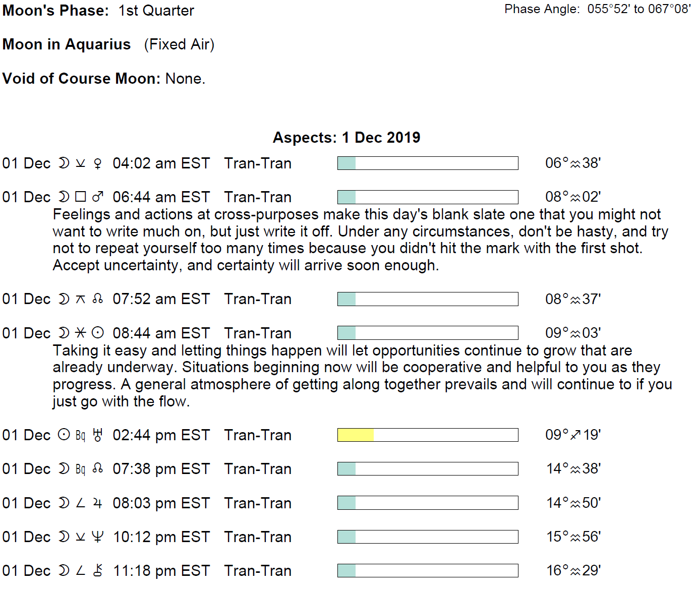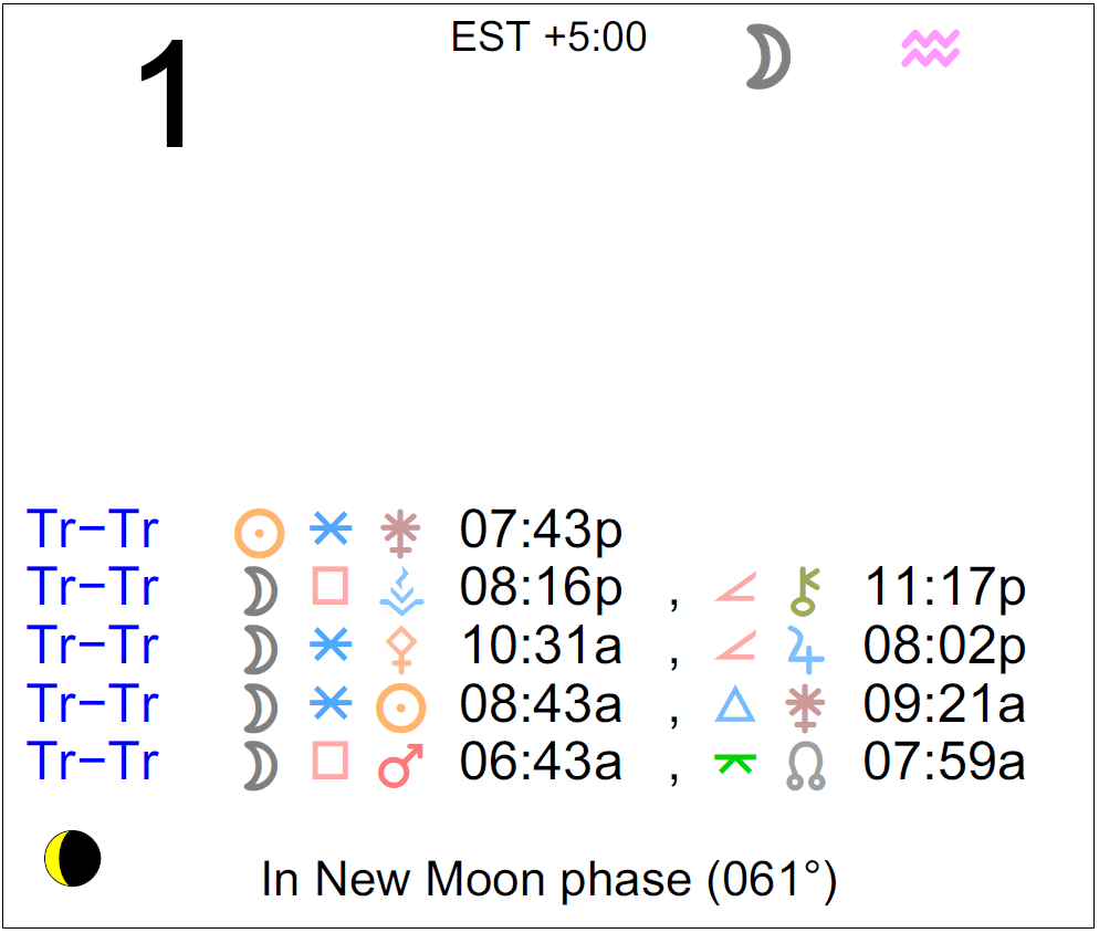 Planet Color Key: The longer the bar, the slower the aspecting planet and the longer the duration of the planet’s transit.