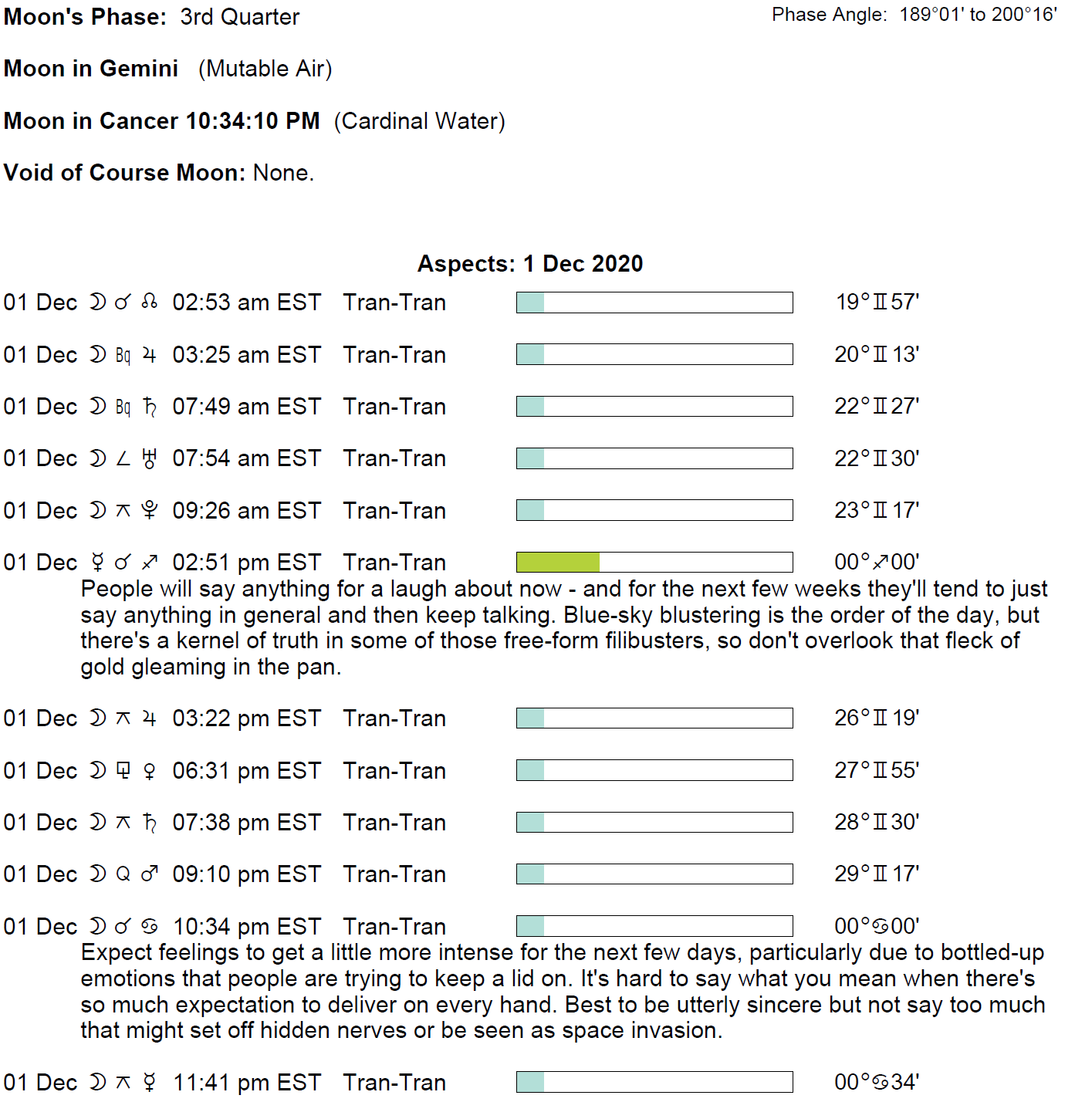 If you’re astrologically inclined and interested in the details of the Astrology of today, here are some of the factors considered in the forecasts: