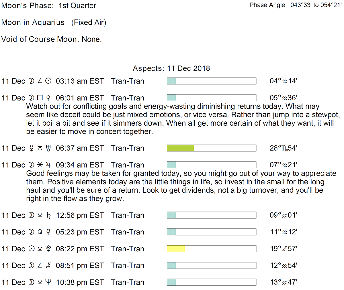 **Conjunctions to Select Fixed Stars on December 11, 2018.**