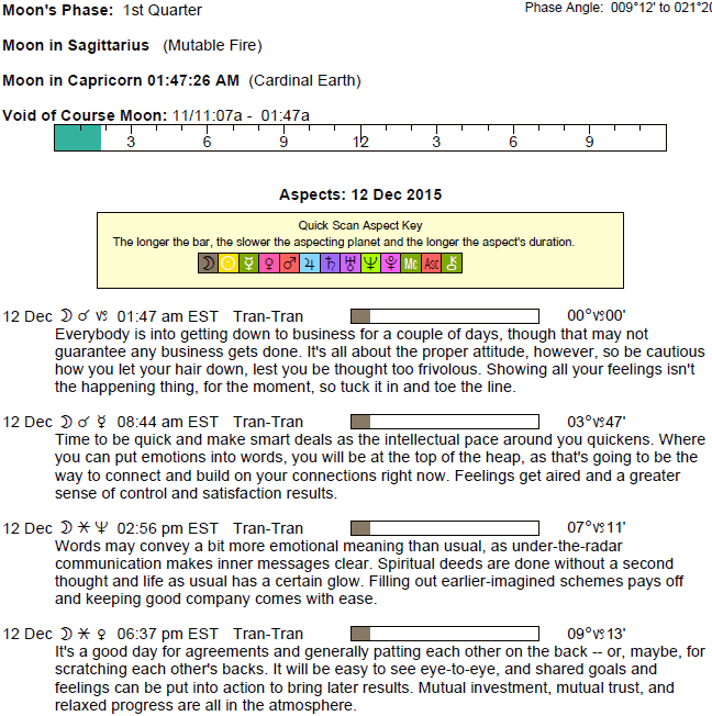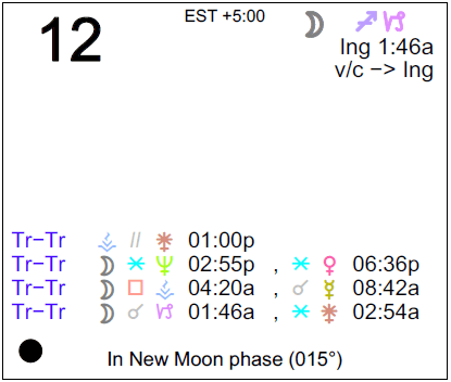 The following aspects (major only) and positions are at noon (EST) on December 12th: