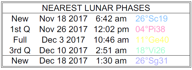 - The Last Quarter Moon occurred on the 10th, and the New Moon will occur on December 18th.