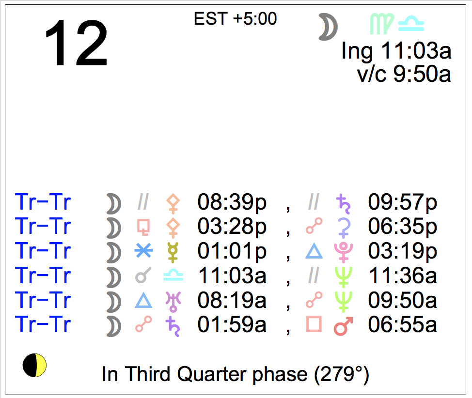 - A void Moon period occurs from 9:50 AM to 11:03 AM today.