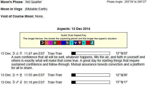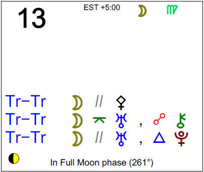 The following aspects (major only) and positions are at noon (EST) on December 13th: