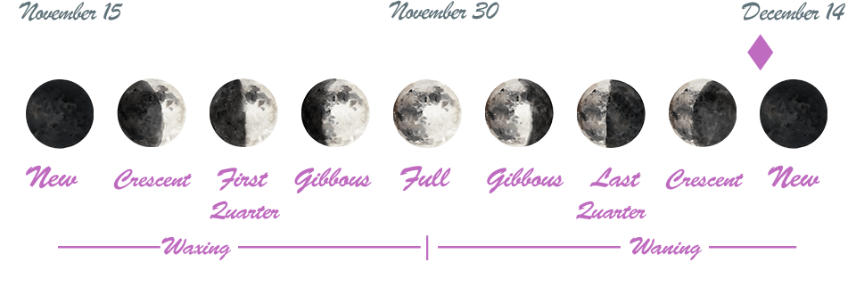 - The Last Quarter Moon occurred on the 7th, and a New Moon/Solar Eclipse will occur tomorrow in the sign of Sagittarius.
