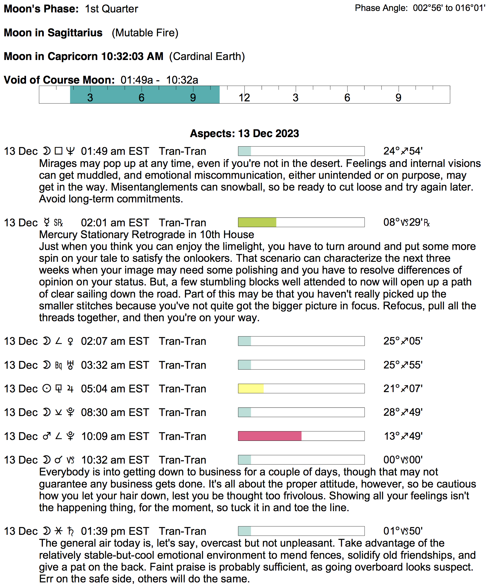 If you’re astrologically inclined and interested in the details of the Astrology of today, here are some of the factors considered in the forecasts: