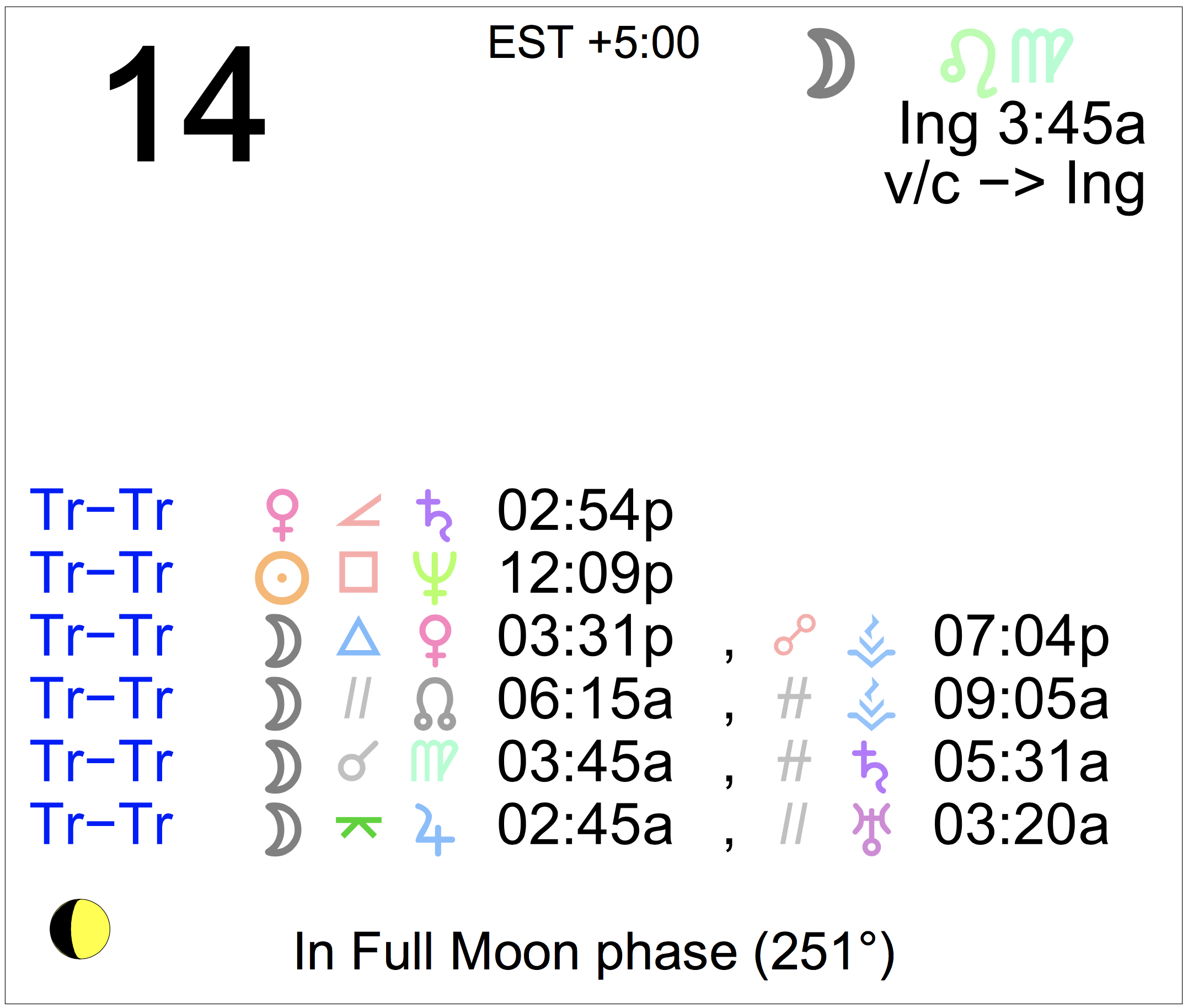 - A void Moon period continues today until 3:45 AM (since yesterday at 10:51 AM).