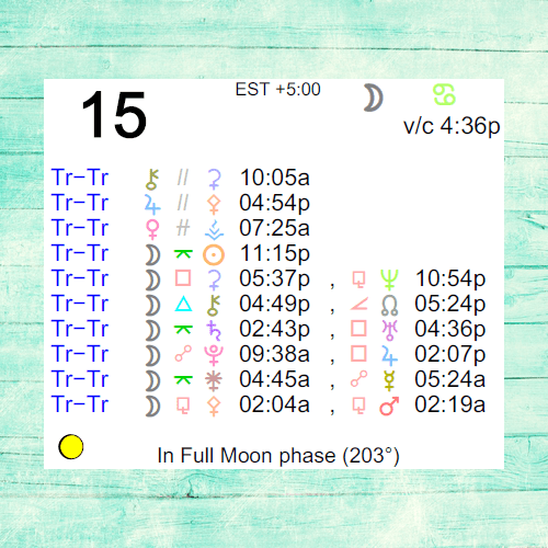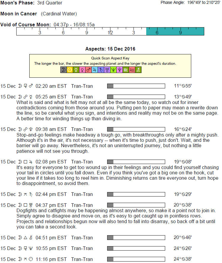 - The Moon is in Cancer all day (until Friday, December 16th, at 8:14 AM).