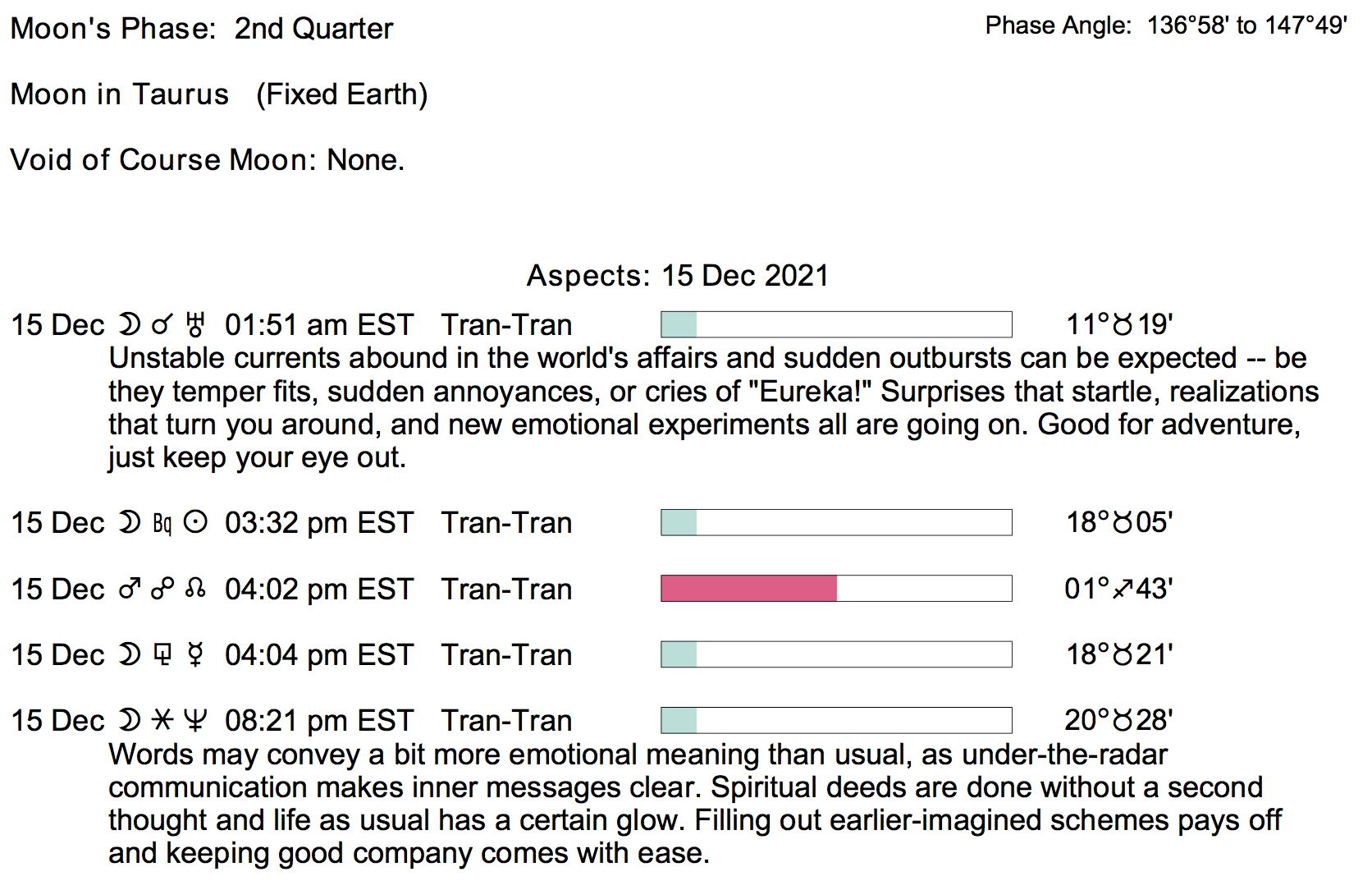 If you’re astrologically inclined and interested in the details of the Astrology of today, here are some of the factors considered in the forecasts: