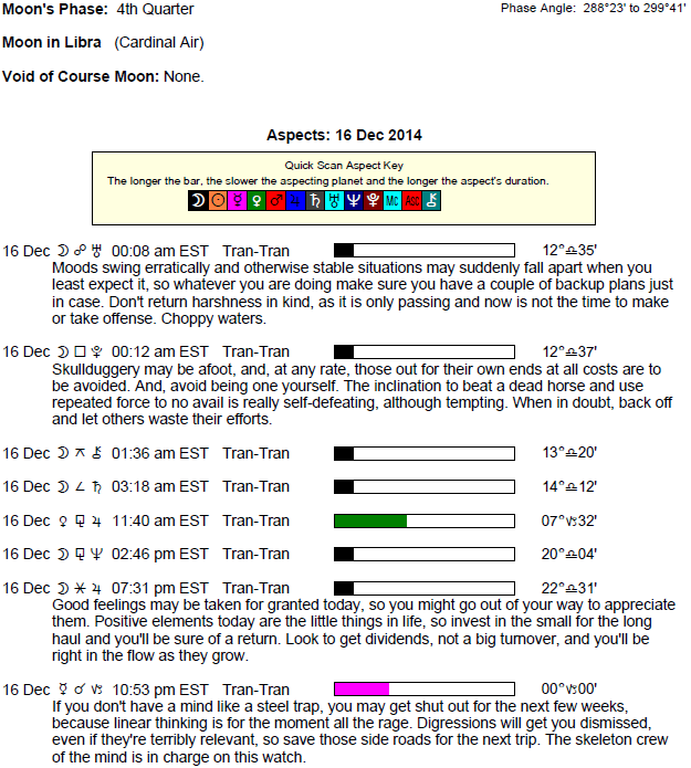 If you’re astrologically inclined and interested in the details of the Astrology of today, here are the factors considered in the forecasts: