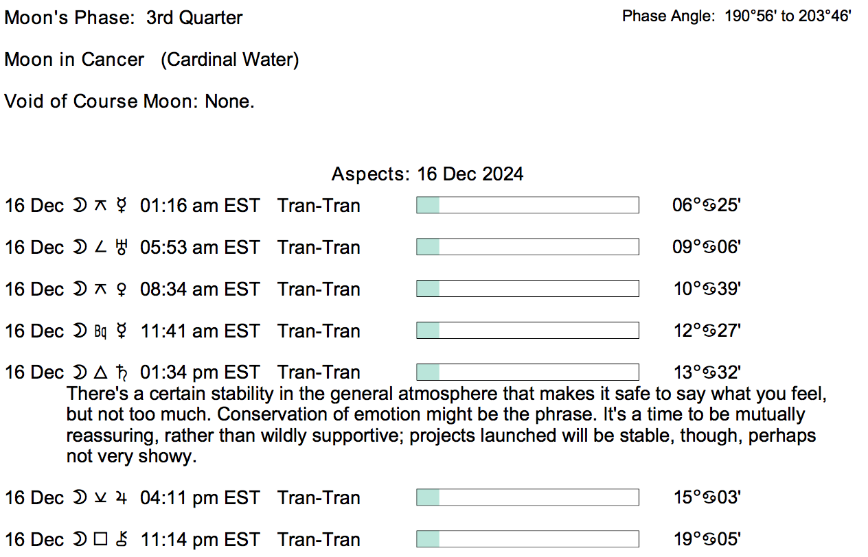 **Conjunctions to Select Fixed Stars on December 16, 2024.**