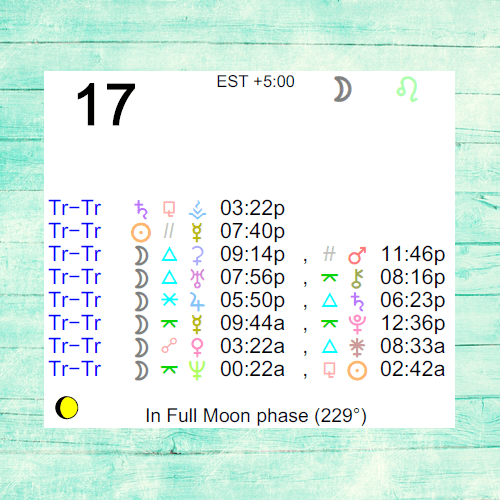 An auspicious time for any project demanding endurance or tolerance. Also good for establishing new habits and rituals.