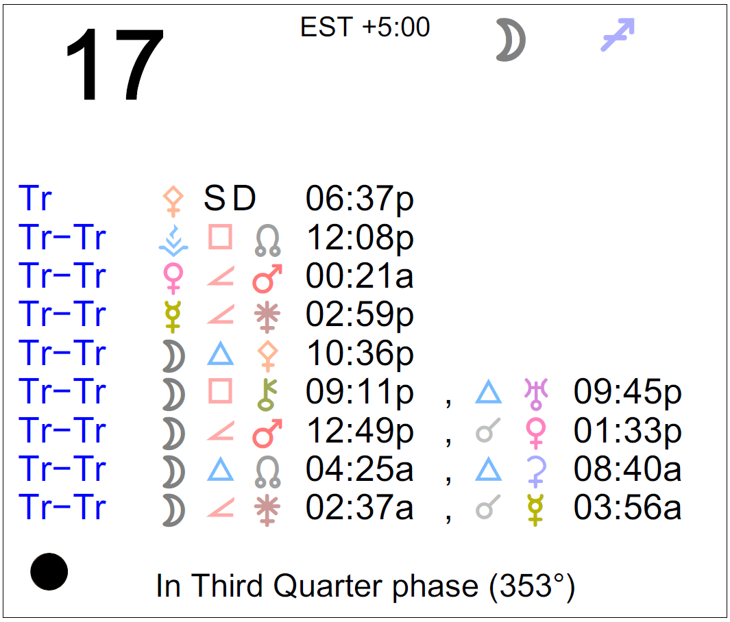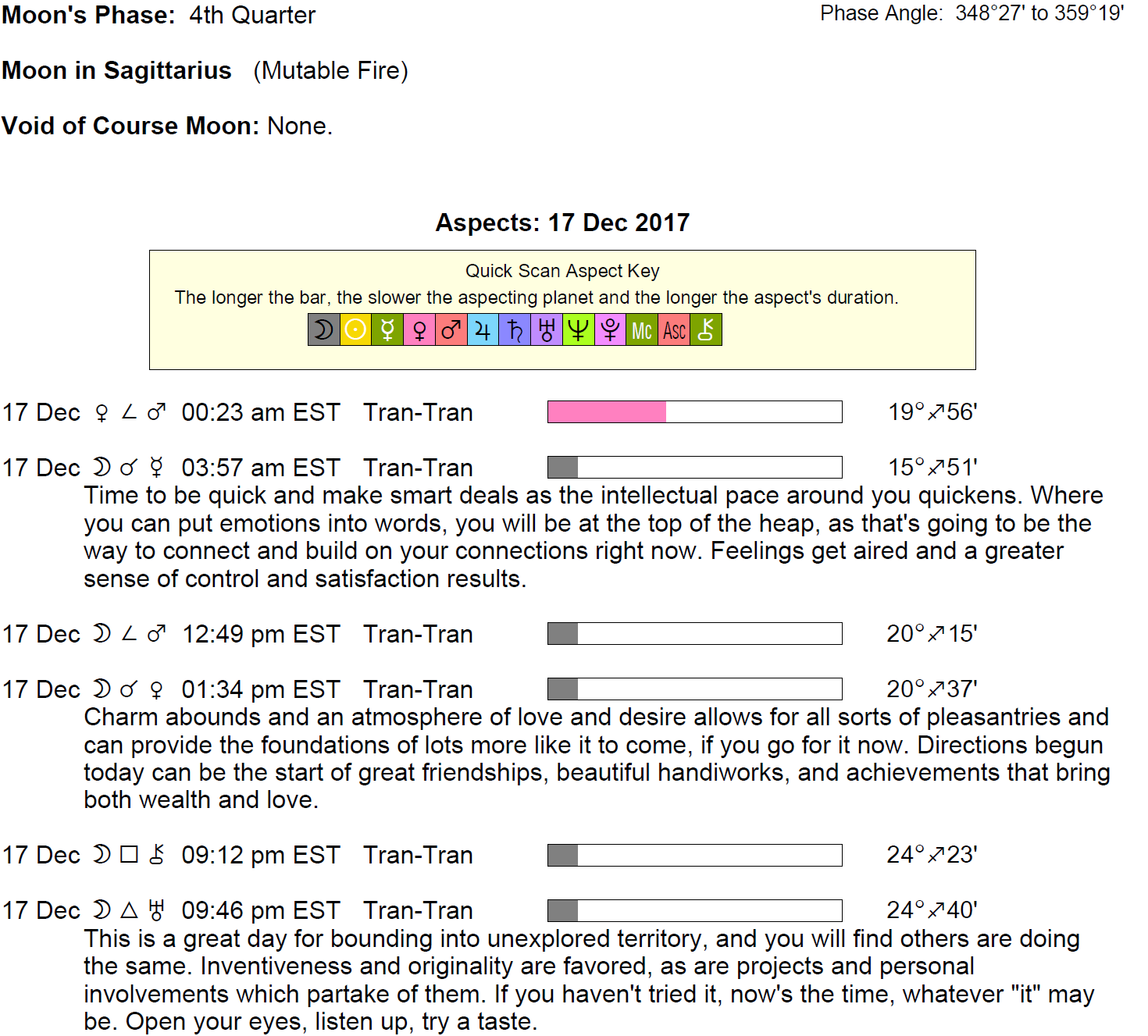 The following aspects (major only) and positions are at noon (EST) on December 17th: