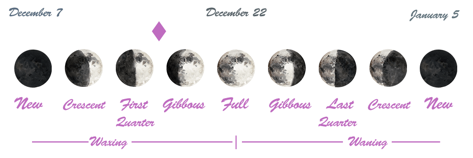 - We are between the First Quarter Moon which occurred on the 15th and the Full Moon which will occur in the sign of Cancer on December 22nd.