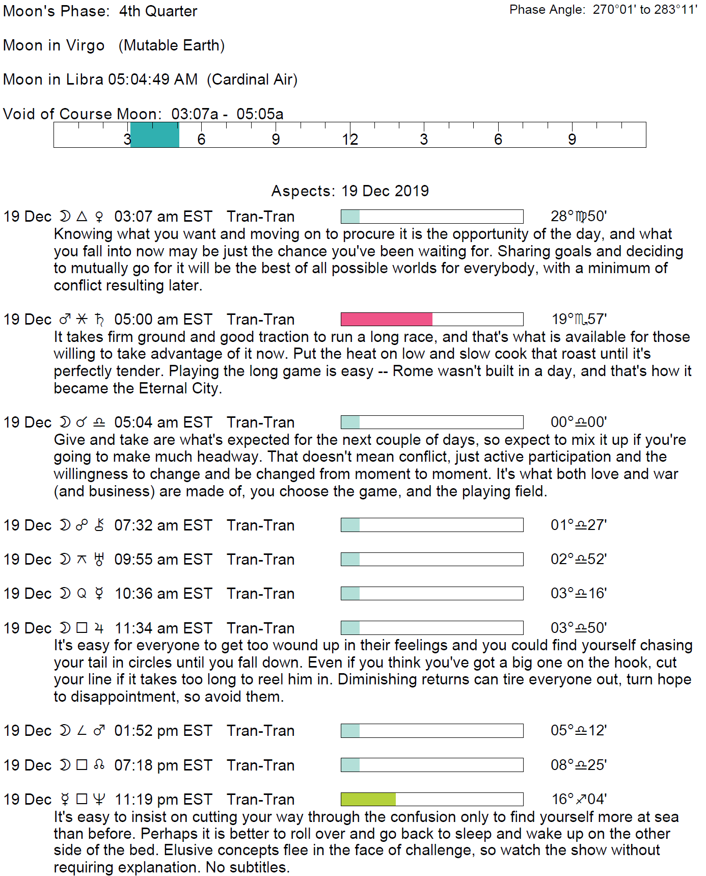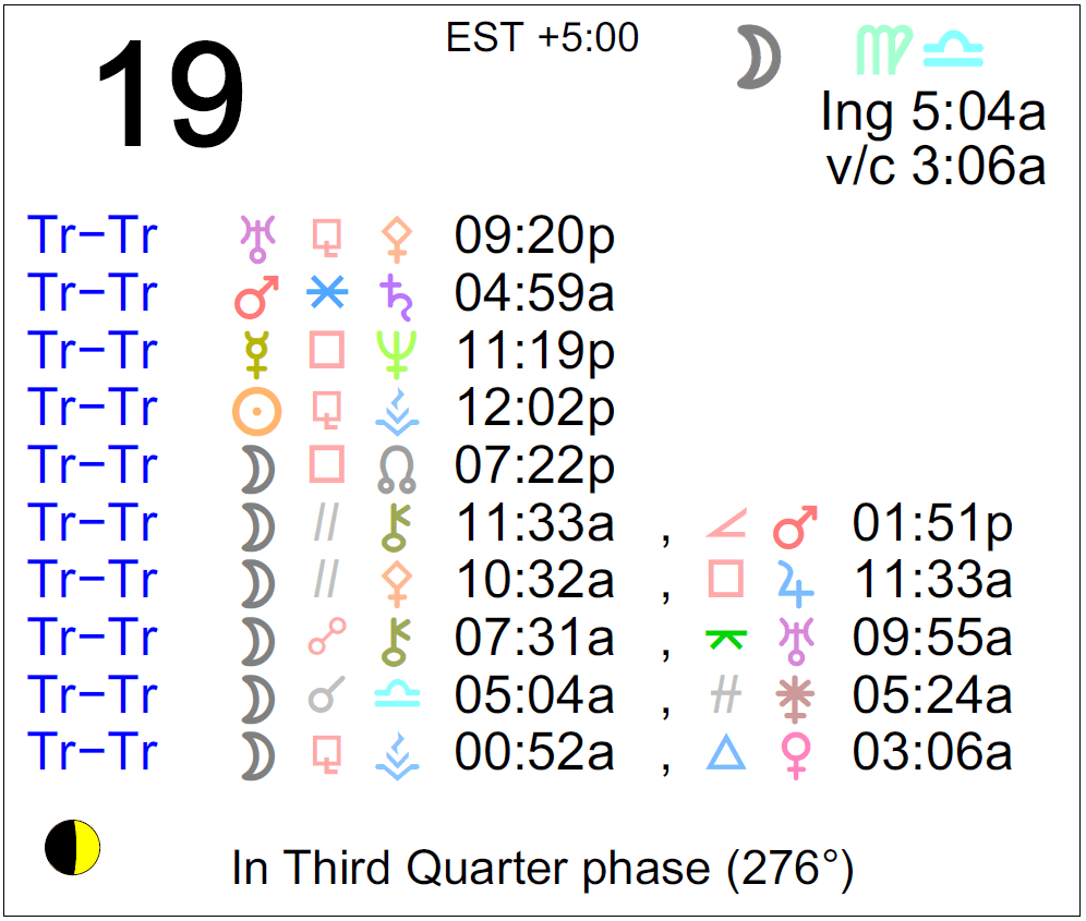 - The void Moon occurs today from 3:06 AM to 5:04 AM.