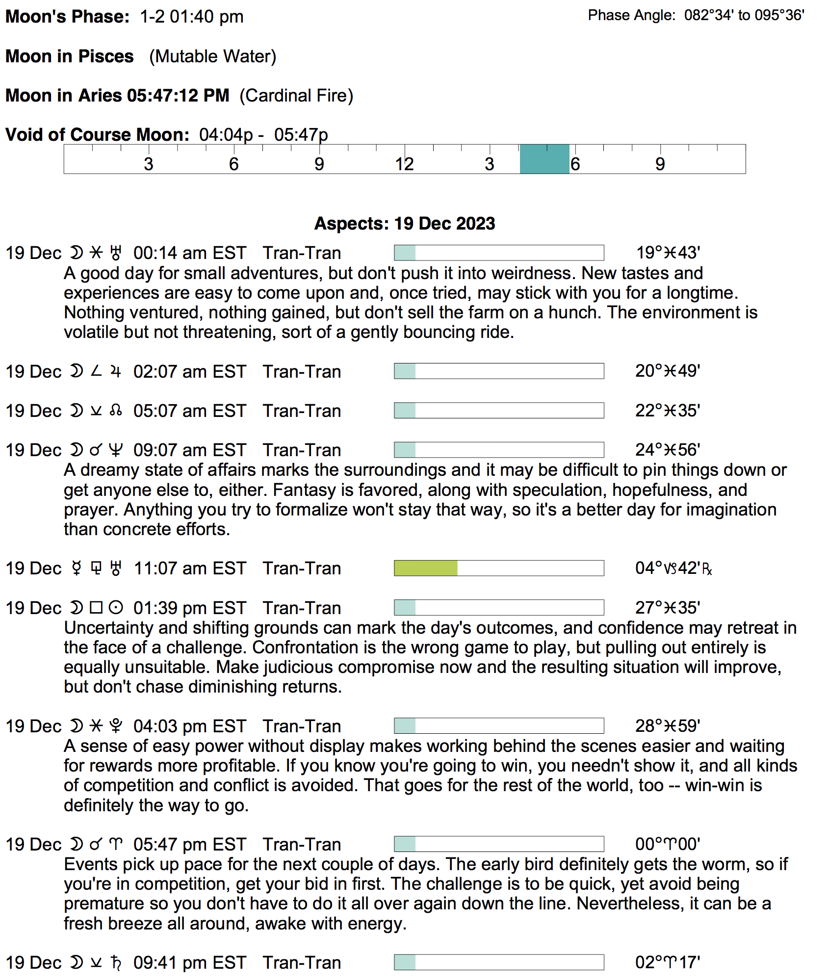 If you’re astrologically inclined and interested in the details of the Astrology of today, here are some of the factors considered in the forecasts: