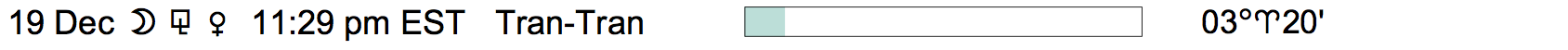 Planet Color Key: The longer the bar, the slower the aspecting planet, and the longer the duration of the planet’s transit.
