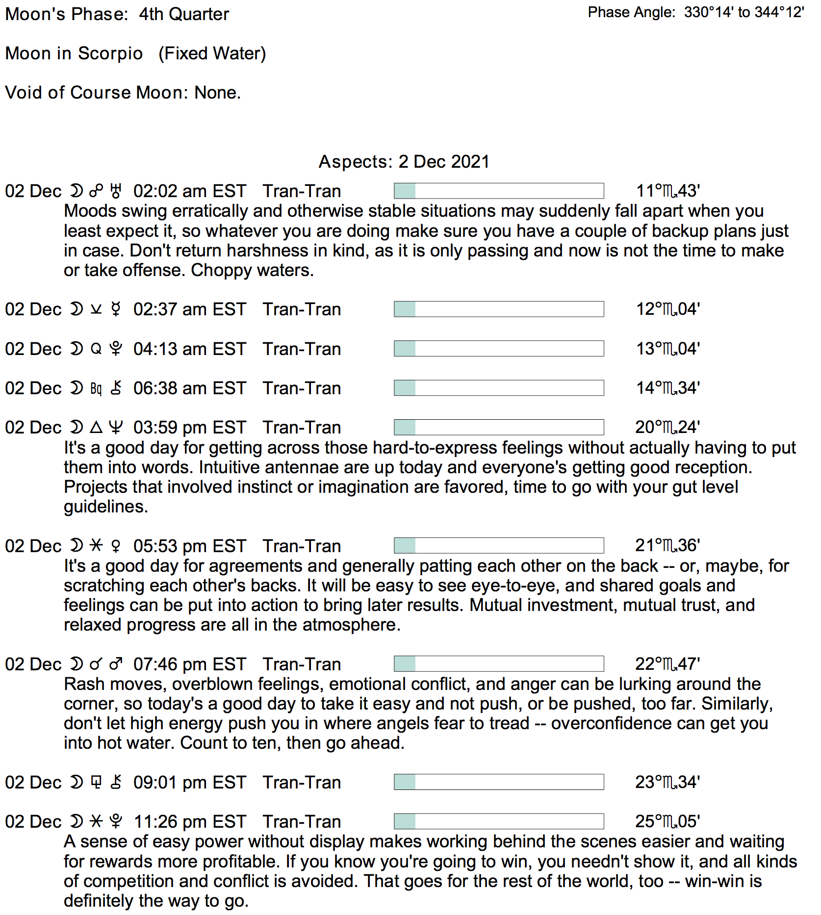 If you’re astrologically inclined and interested in the details of the Astrology of today, here are some of the factors considered in the forecasts:
