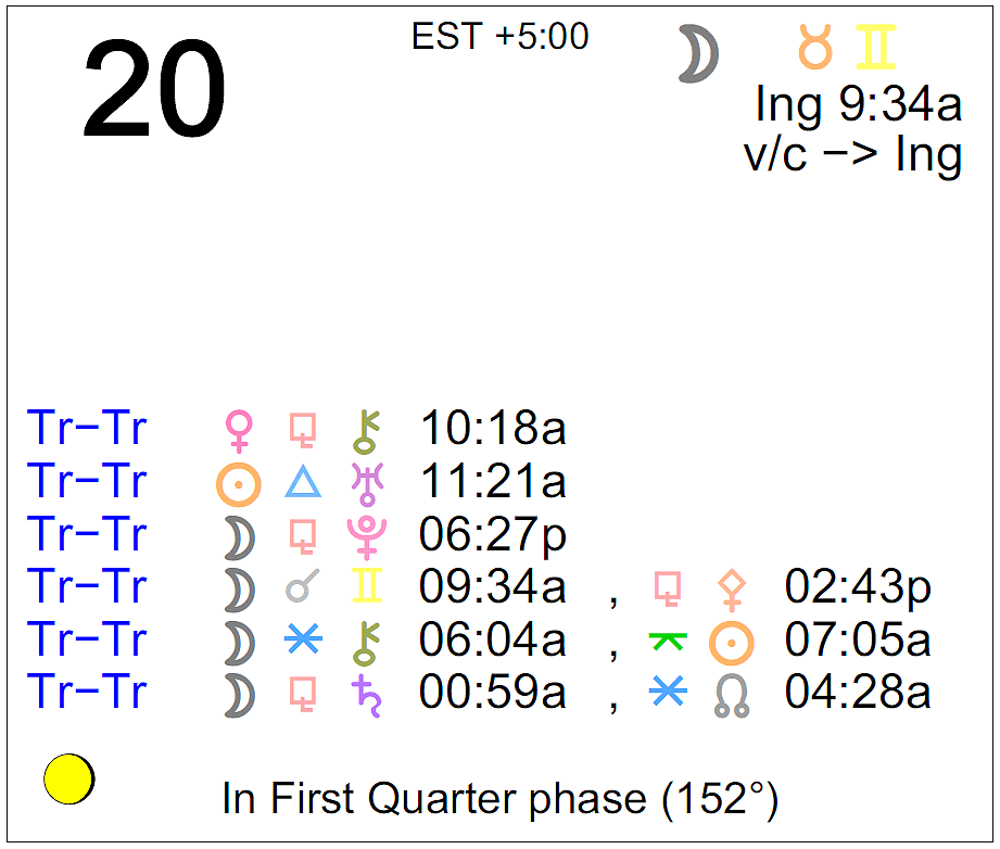 - The Moon is in Taurus until 9:34 AM, after which the Moon is in Gemini.