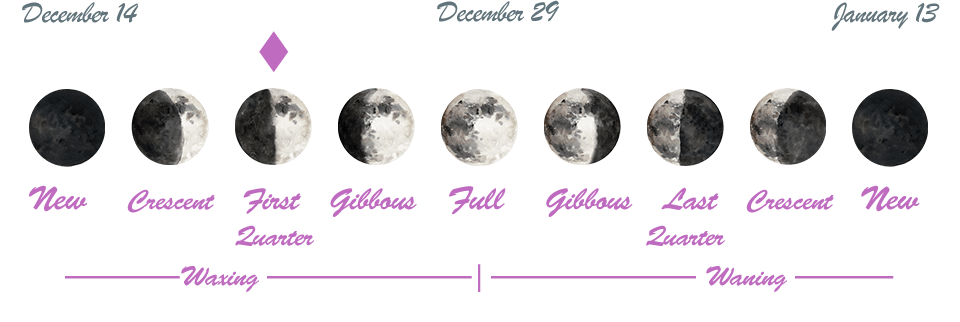 - The Moon is waxing and in its Waxing Crescent phase until 6:41 PM, after which the Moon is in its First Quarter phase.