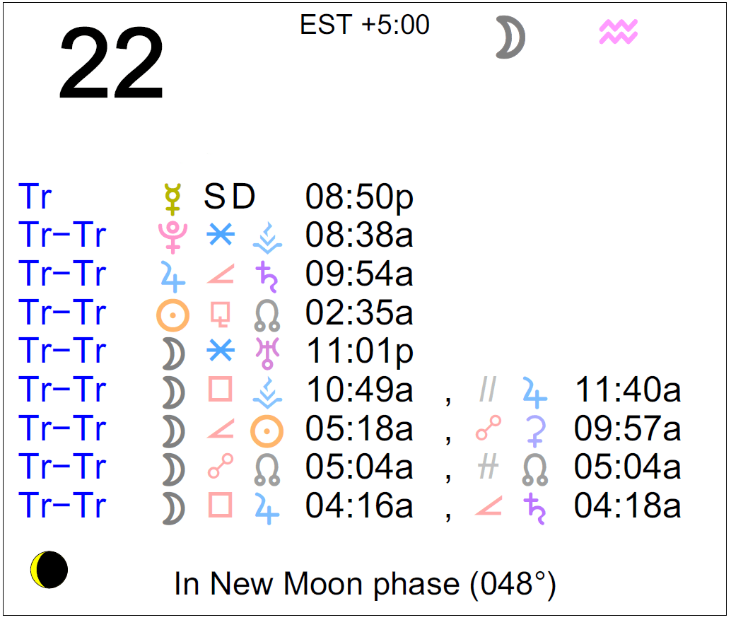 Description: Transiting Moon SemiSquare Transiting Saturn