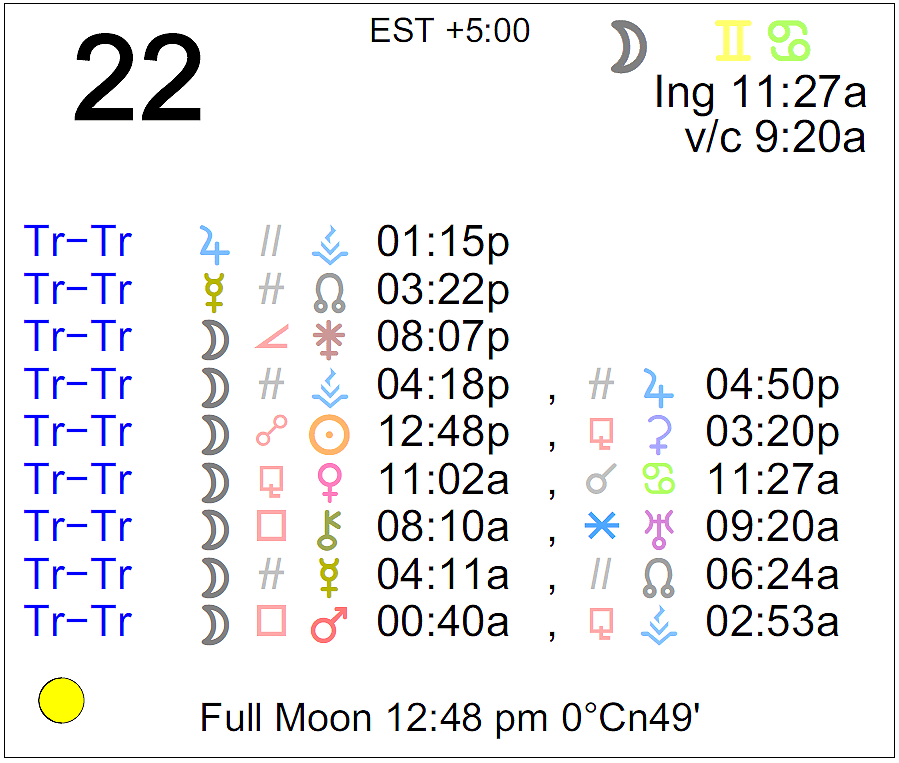- The Full Moon occurs in the sign of Cancer today at 12:48 PM.