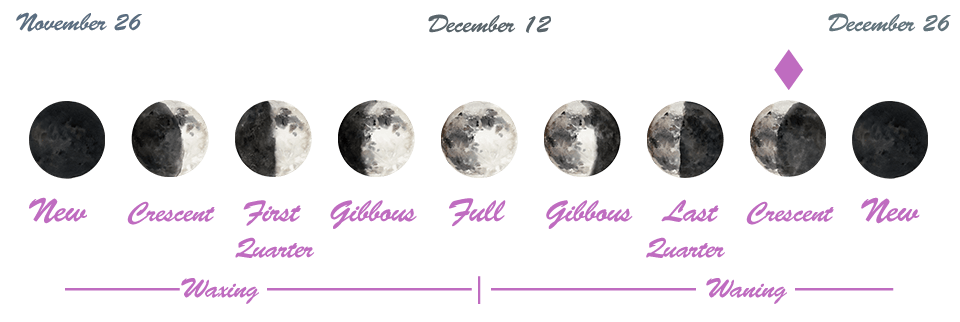 - The Moon is waning and its Last Quarter phase until 10:25 AM, after which the Moon is in its Waning Crescent phase.