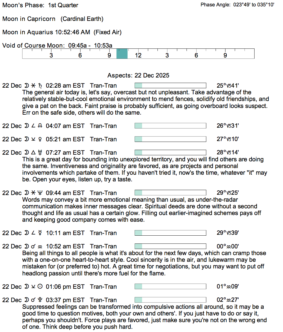 If you’re astrologically inclined and interested in the details of the Astrology of today, here are some of the factors considered in the forecasts: