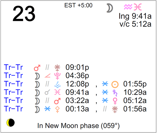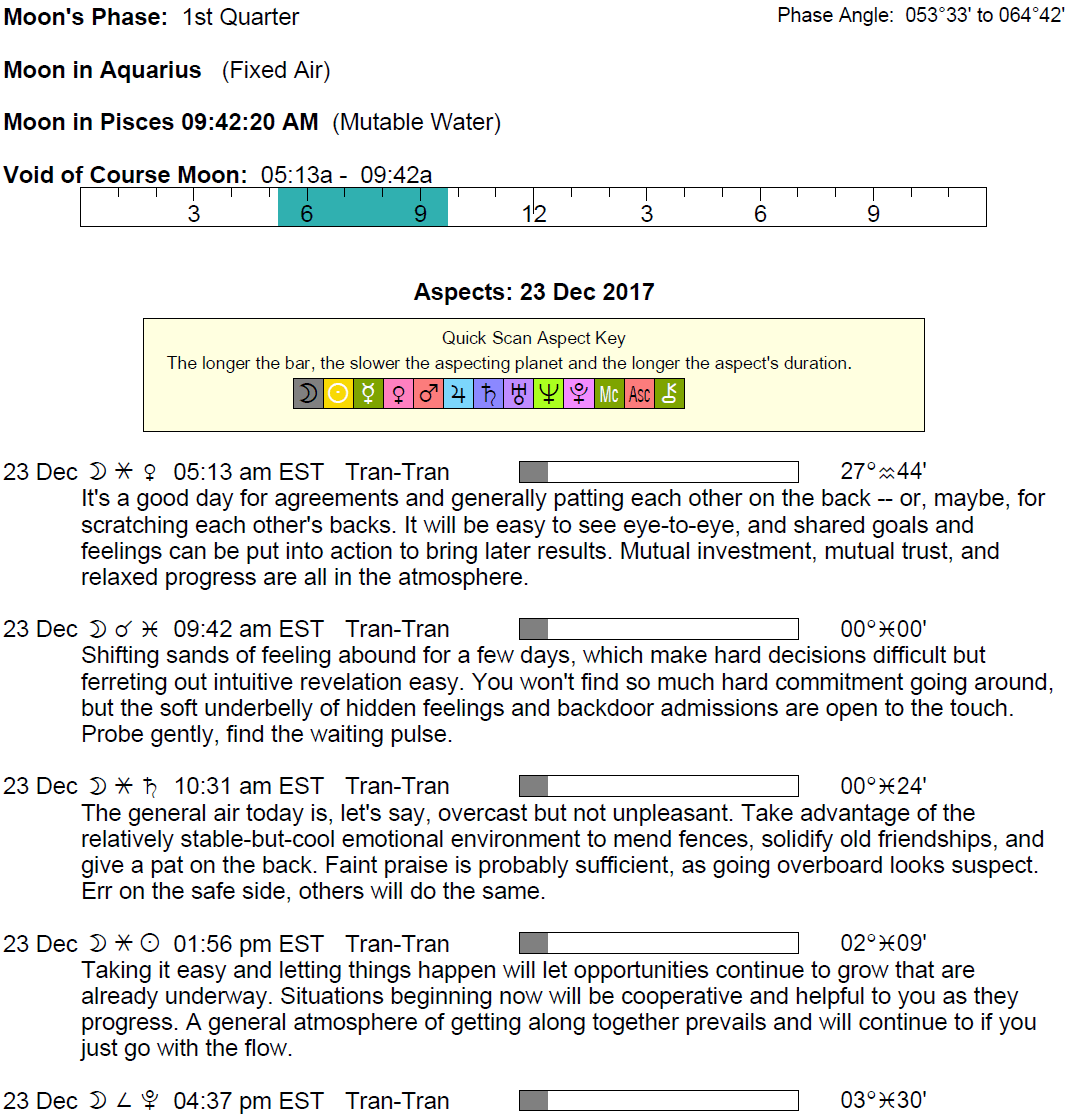 The following aspects (major only) and positions are at noon (EST) on December 23rd: