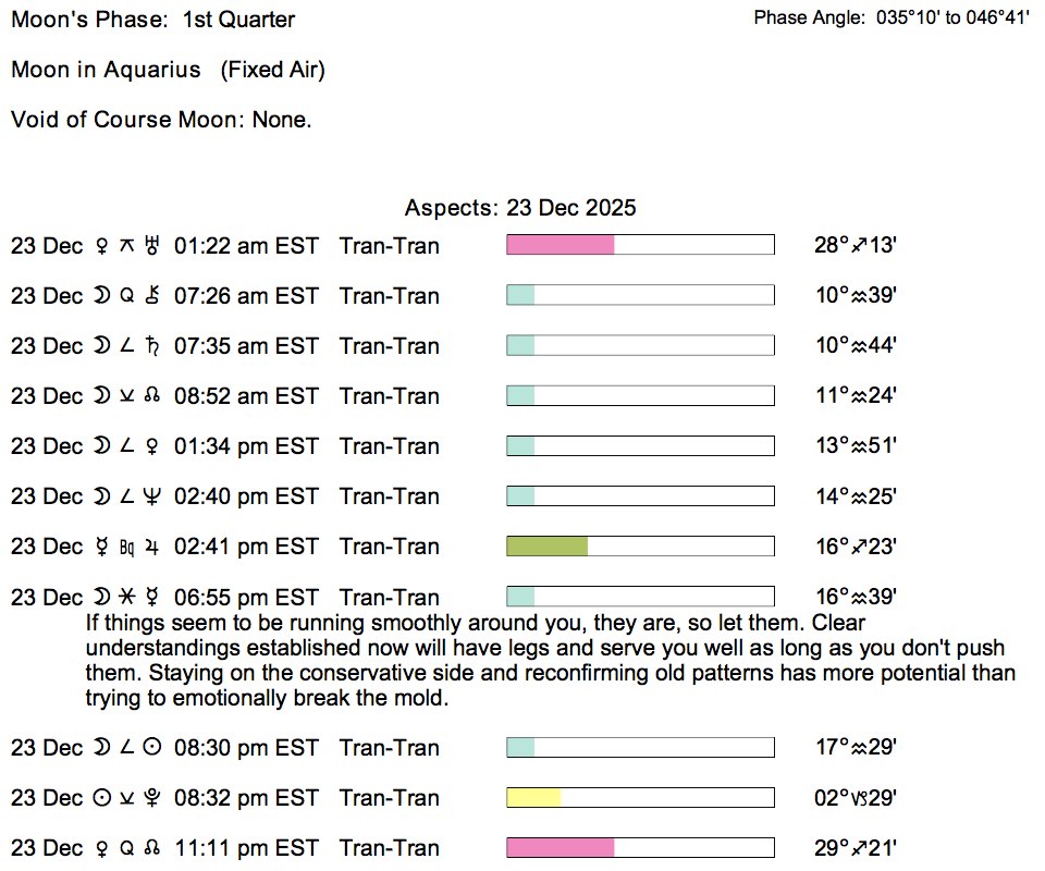 If you’re astrologically inclined and interested in the details of the Astrology of today, here are some of the factors considered in the forecasts: