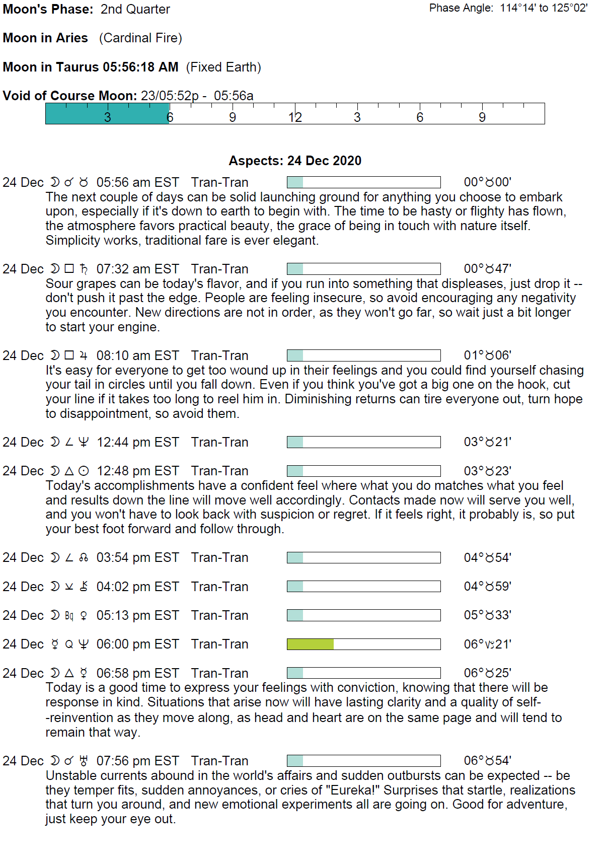Planet Color Key: The longer the bar, the slower the aspecting planet, and the longer the duration of the planet’s transit.