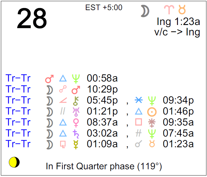 - The Moon is void until 1:23 AM (since yesterday at 3:57 PM).