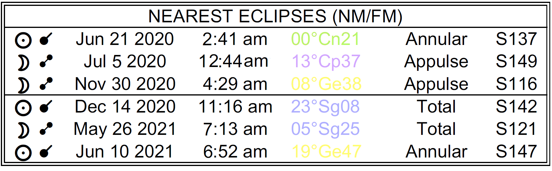 Planet Color Key: The longer the bar, the slower the aspecting planet, and the longer the duration of the planet’s transit.