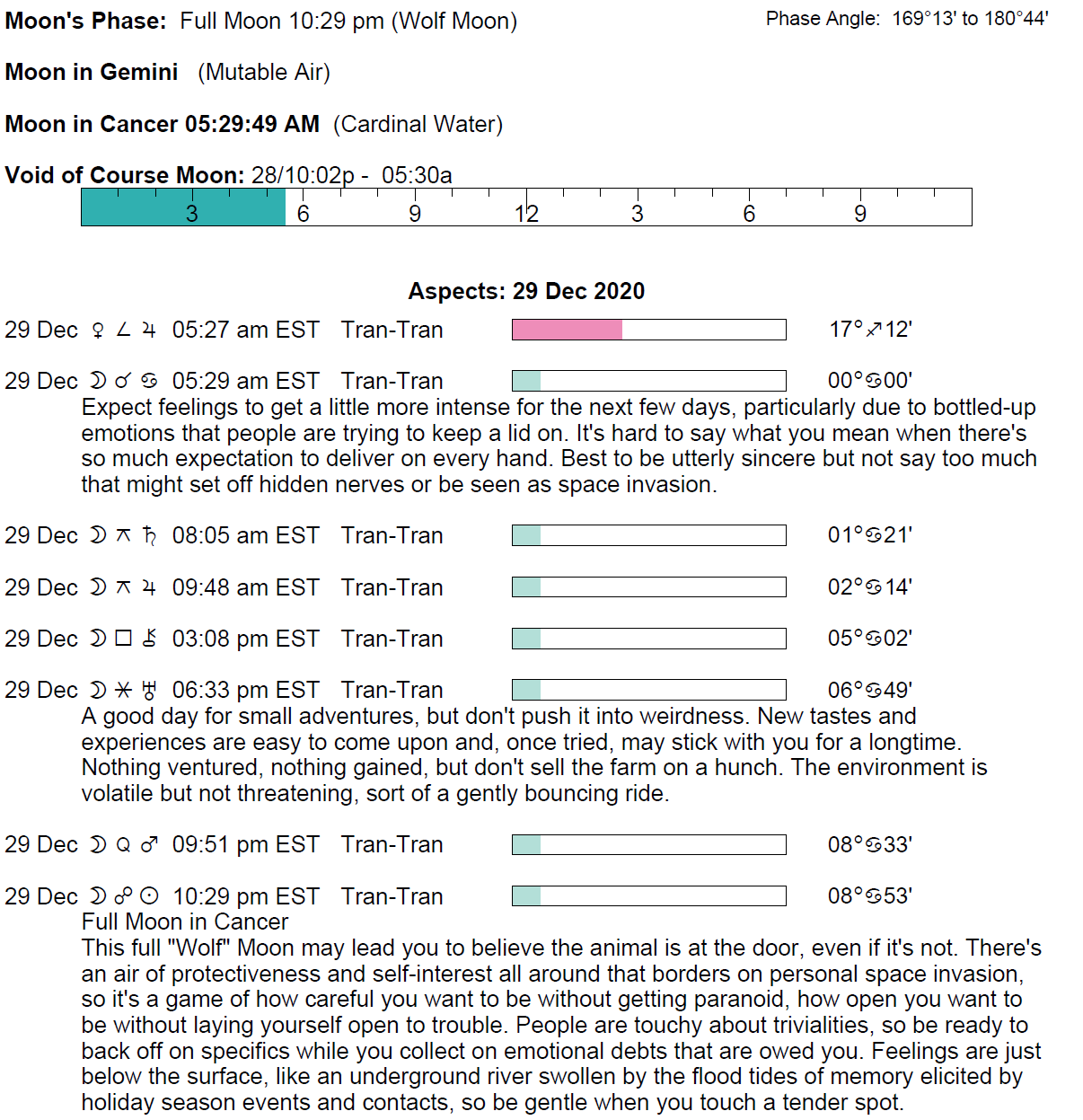 - The Full Moon occurs today in the sign of Cancer at 10:28 PM.