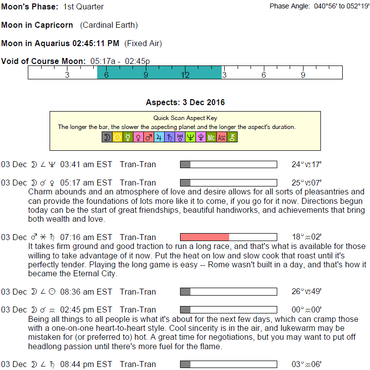 The following aspects (major only) and positions are at noon (EST) on December 3rd: