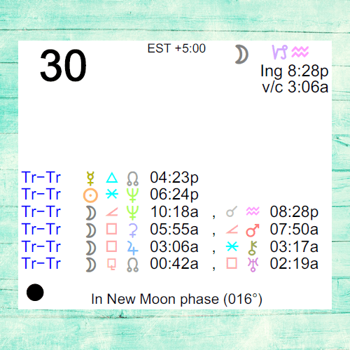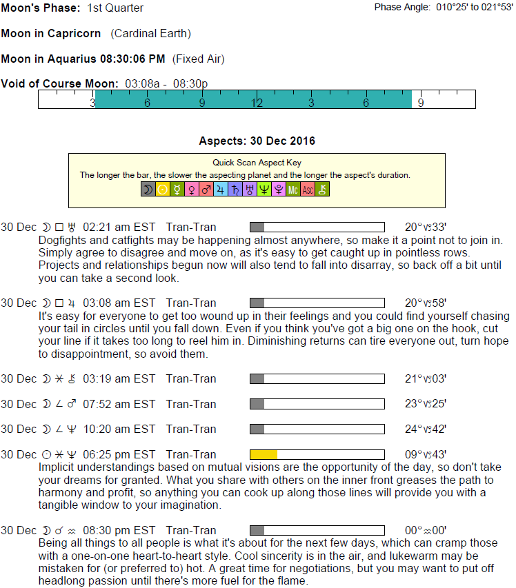 The following aspects (major only) and positions are at noon (EST) on December 30th: