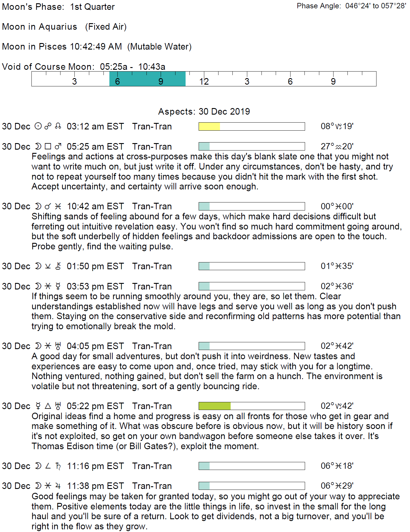 Planet Color Key: The longer the bar, the slower the aspecting planet and the longer the duration of the planet’s transit.