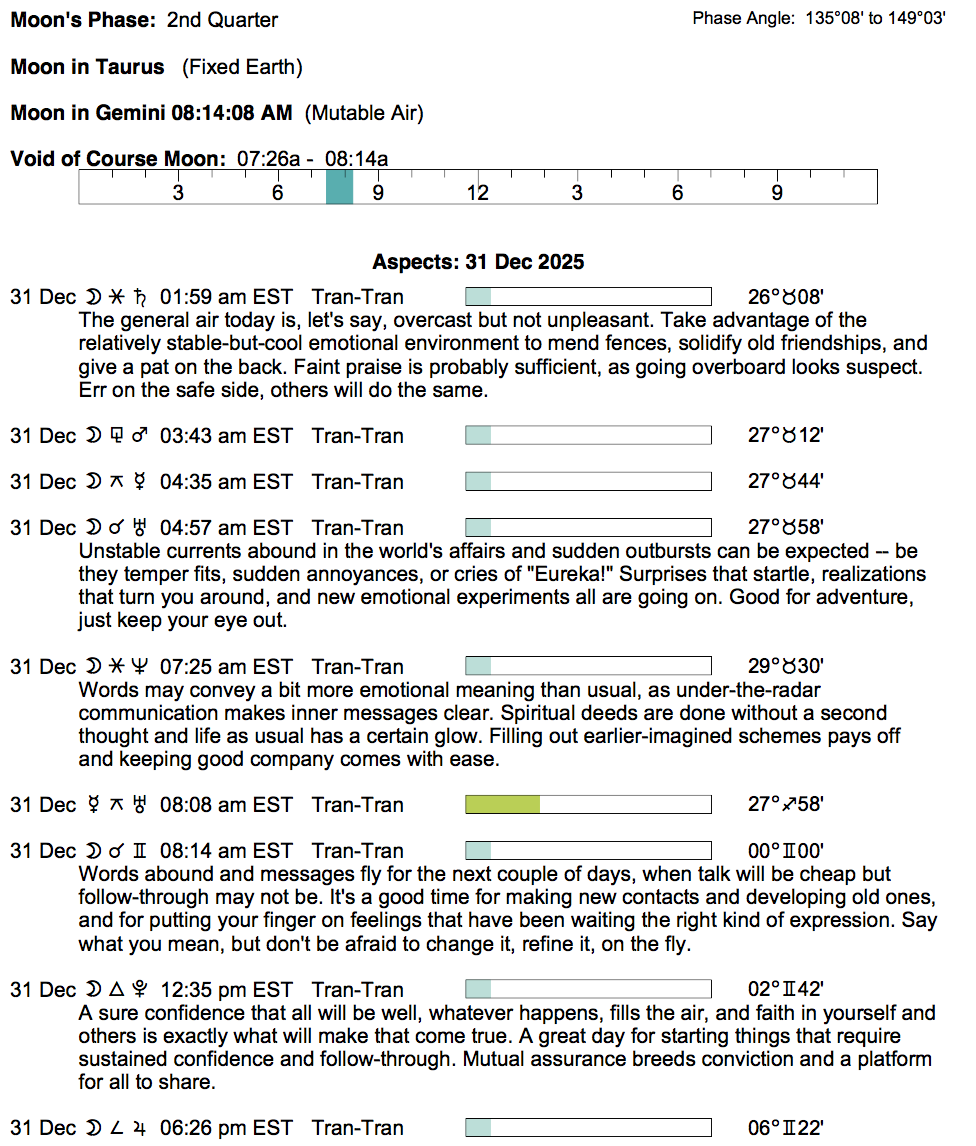 If you’re astrologically inclined and interested in the details of the Astrology of today, here are some of the factors considered in the forecasts: