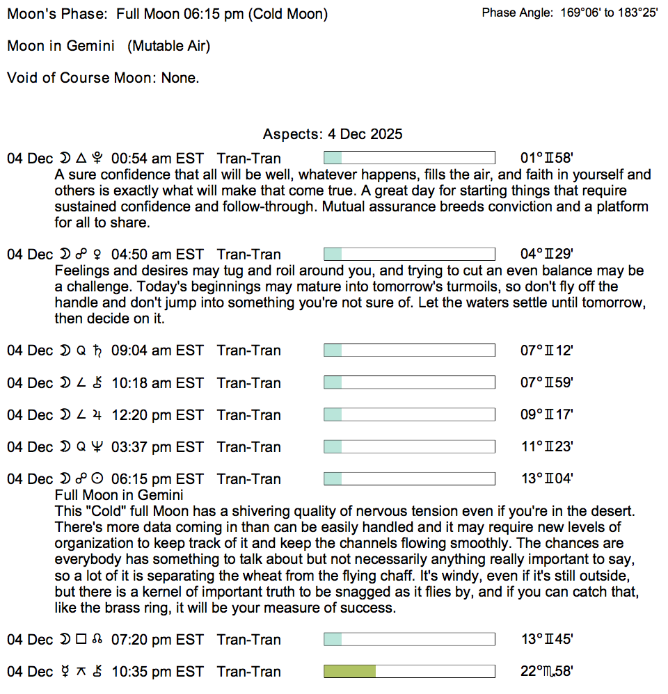 - The Full Moon occurs today at 6:13 PM in the sign of Gemini.
