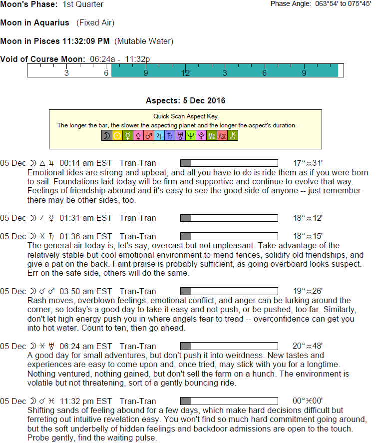 The following aspects (major only) and positions are at noon (EST) on December 5th: