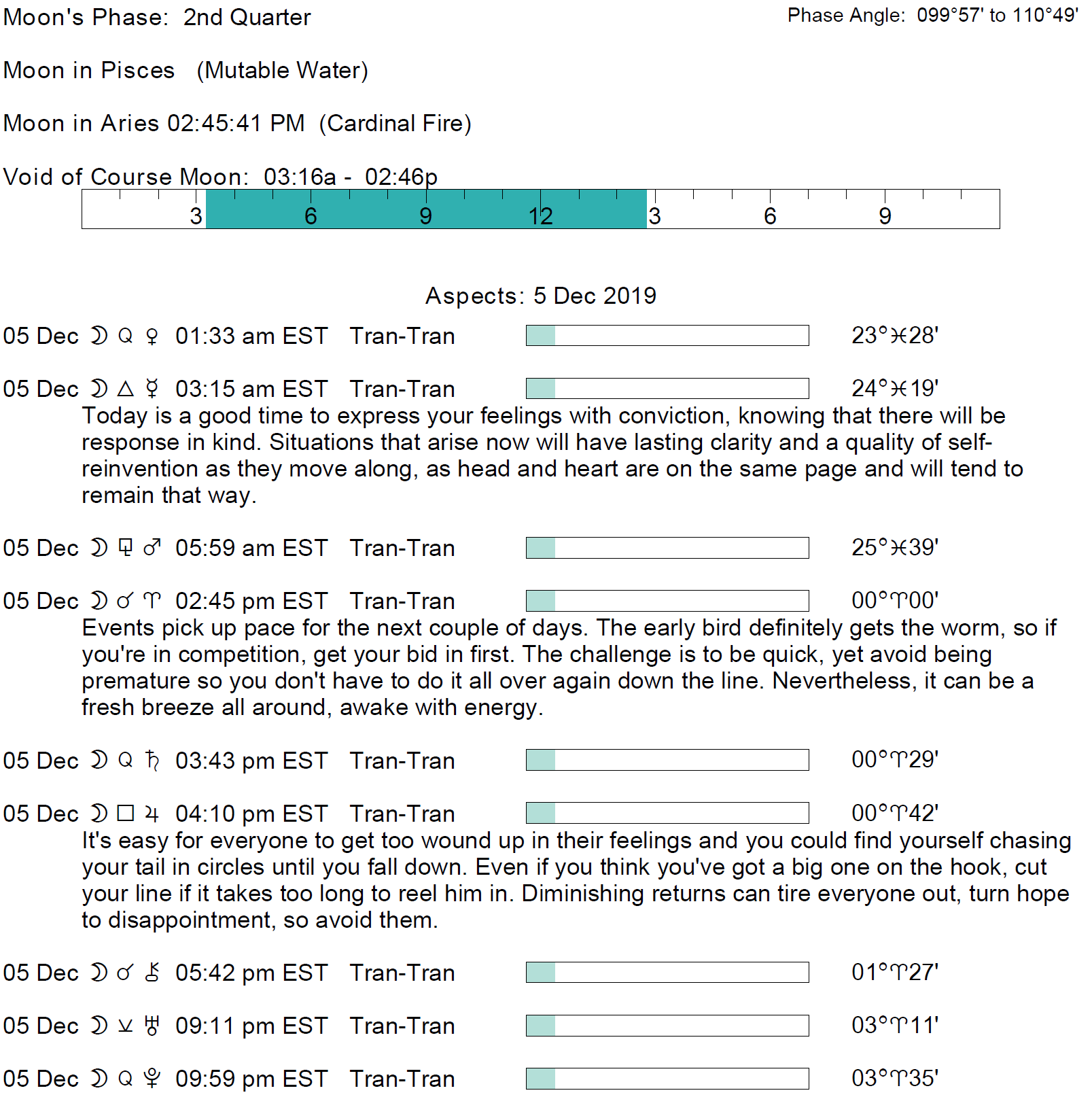 - The void Moon occurs from 3:14 AM to 2:44 PM.