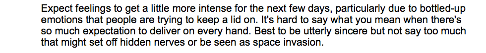If you’re astrologically inclined and interested in the details of the Astrology of today, here are some of the factors considered in the forecasts: