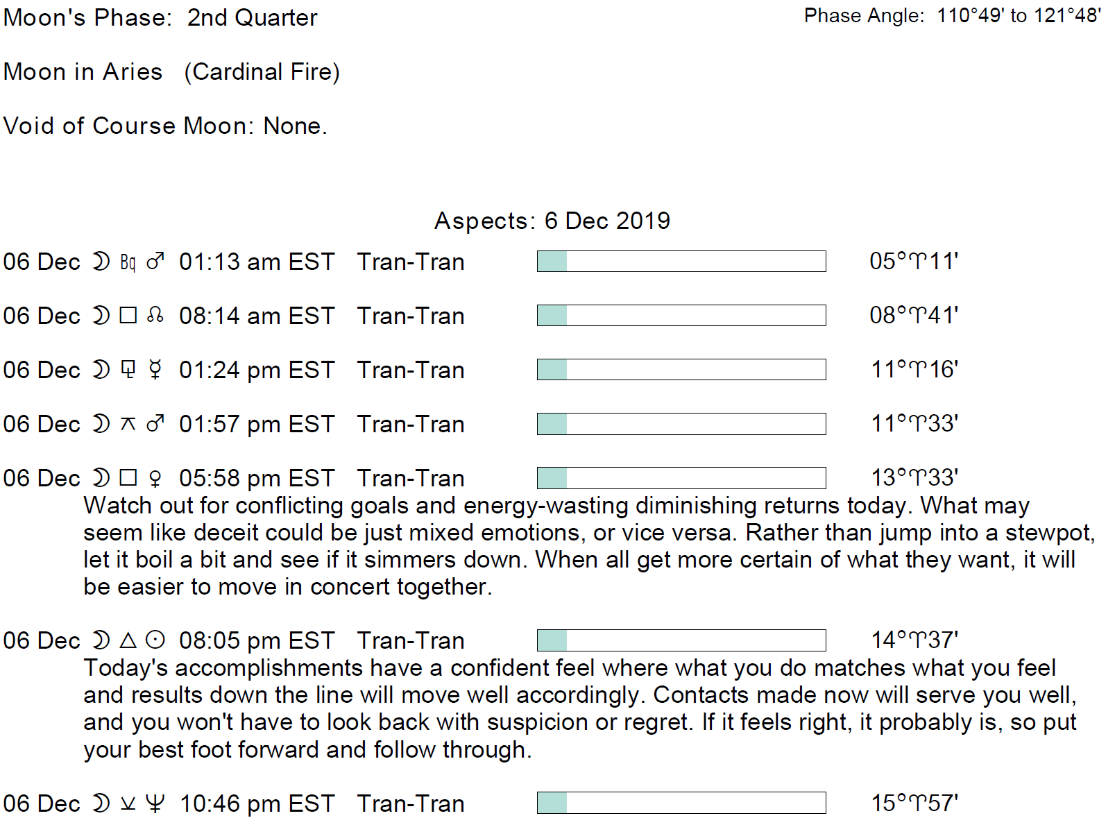 Planet Color Key: The longer the bar, the slower the aspecting planet and the longer the duration of the planet’s transit.