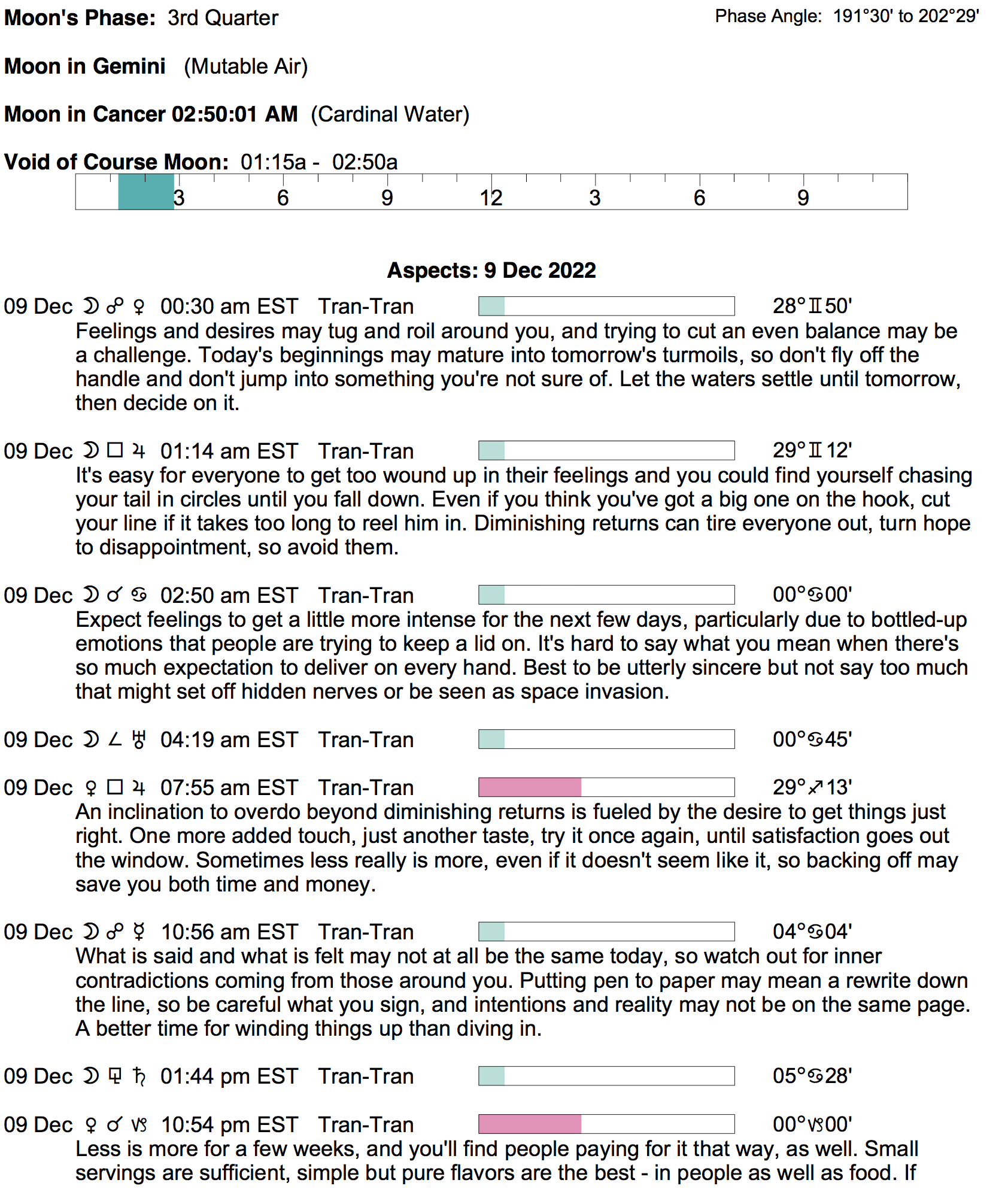 If you’re astrologically inclined and interested in the details of the Astrology of today, here are some of the factors considered in the forecasts: