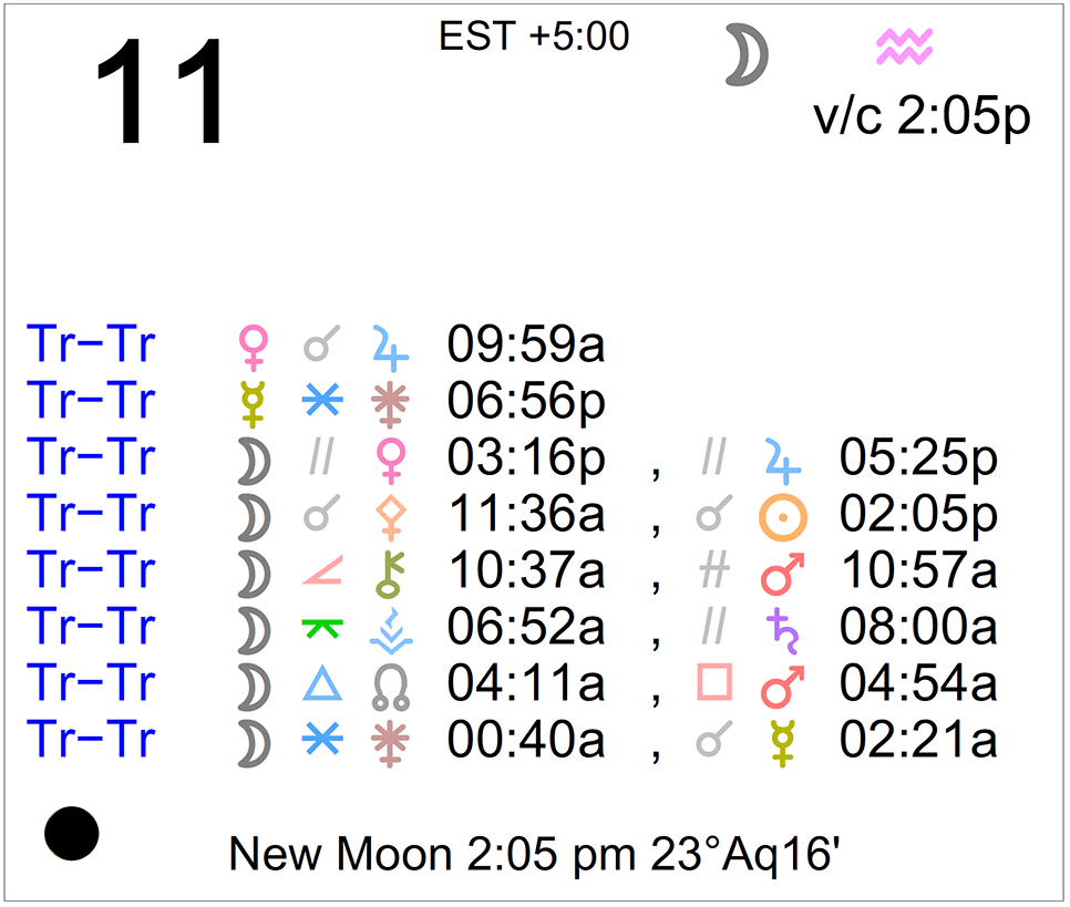 - The New Moon occurs in the sign of Aquarius today at 2:05 PM.